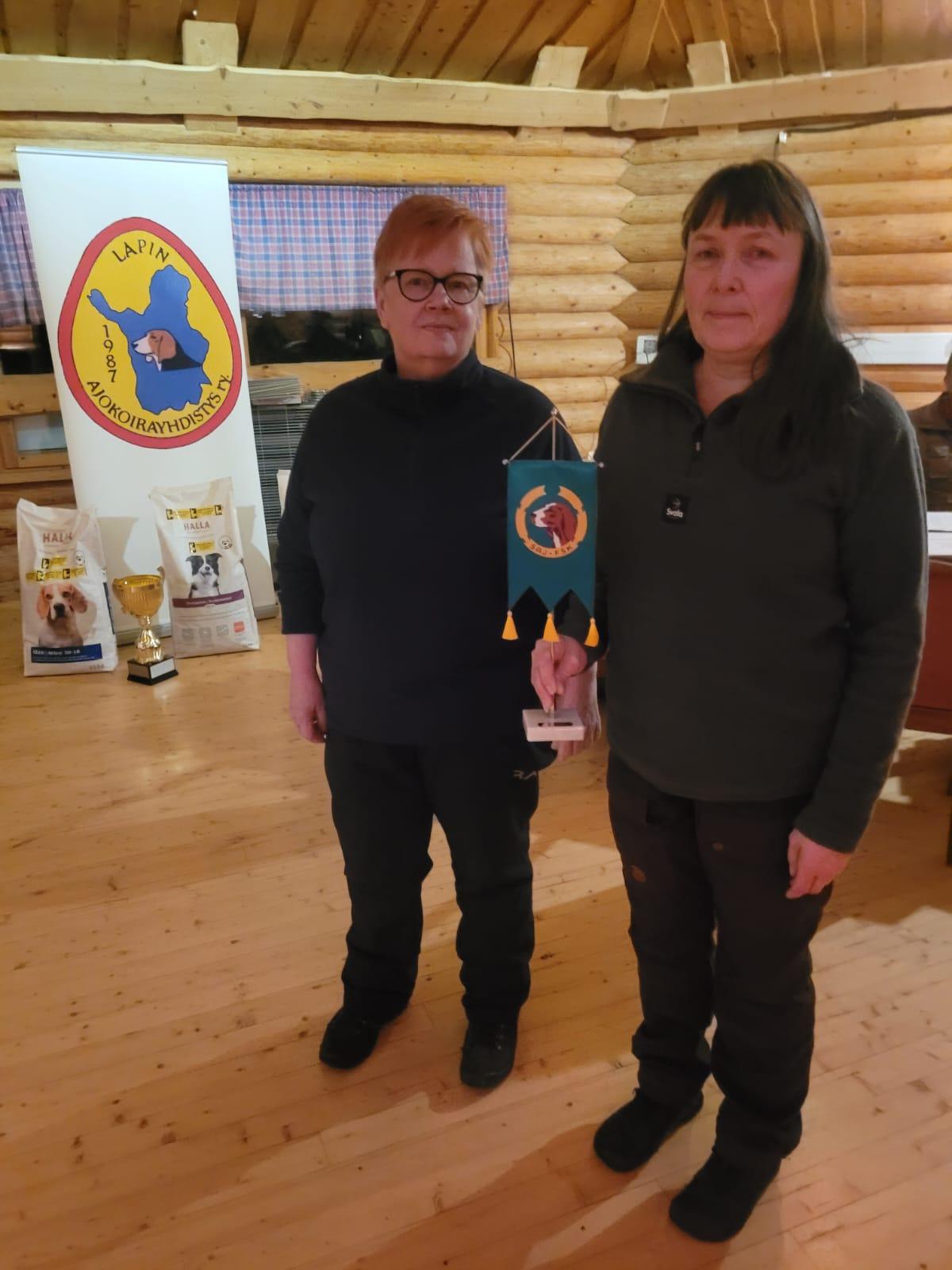 Ennen maastoon lähtöä palkittiin merkkipäiväonnitteluna SAJ:n viirillä Johanna Isaksson ja SAJ:n kultaisella palkintotuomarimerkillä Kauko Kantola. Onnittelut!